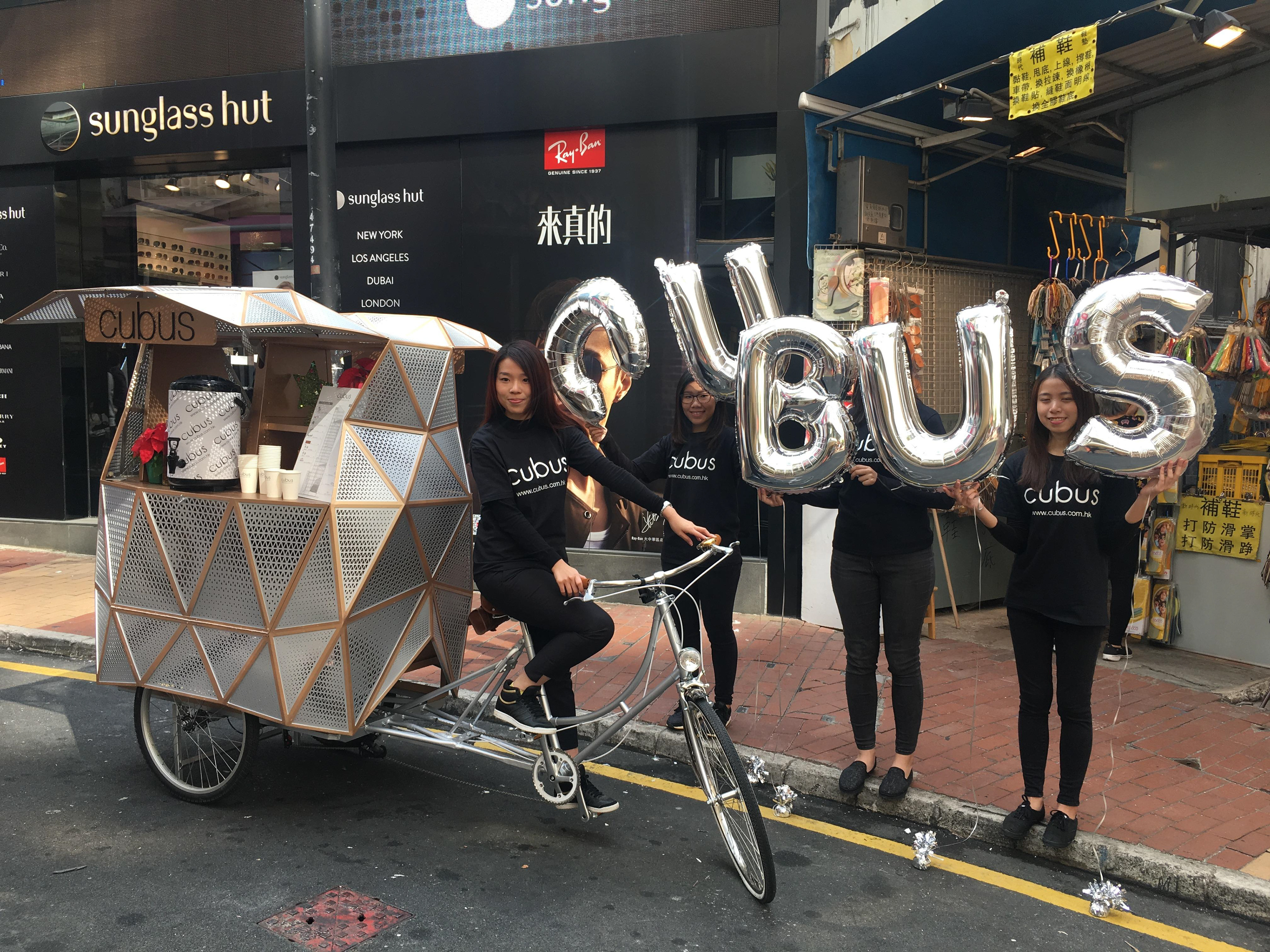 cycle around the Causeway Bay area, showcasing promotional items and allowing the public